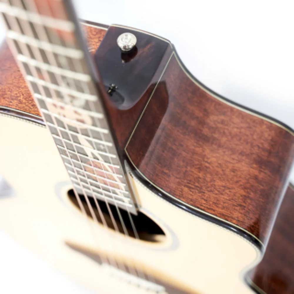 • Формат Jumbo с вырезом cut-away — комфортная игра и глубокий резонанс;