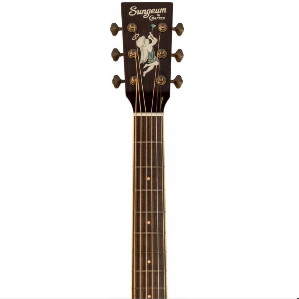 Деревянная инкрустация розетки и маркеров ладов аккуратно дополняет безупречный стиль этой гитары. А дизайн головы грифа выполнен в стиле первых выпущенных гитар Crafter 70-х годов.